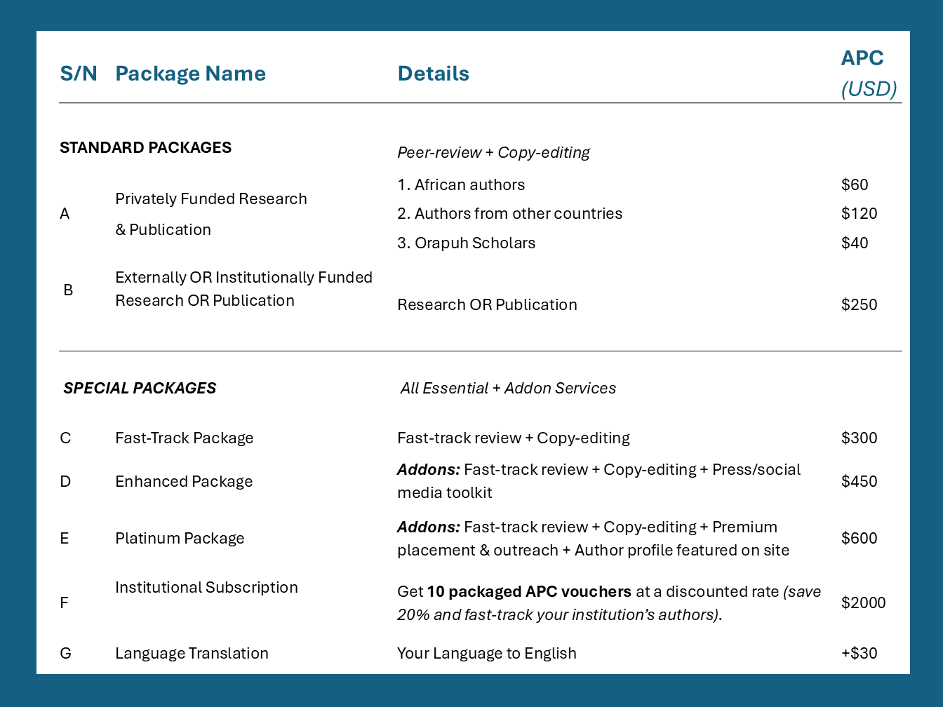 Once paid, the APC is non-refundable under any circumstances. Authors are therefore encouraged to ensure the accuracy and completeness of their submission before making payment.